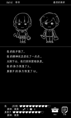 黑白风文字末日生存游戏,玩家需要帮助一男一女两个人在这个末世努力生存,寻找食物资源等,补充能量,保持人物的健康值和精神值,有着多种结局可以体验,喜欢的朋友可以下载试试。