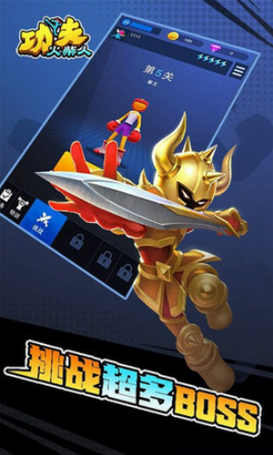 武器能够给敌人造成非常大的伤害,功夫火柴人无限钻石版是一款画风非常简约清新的火柴人打斗类动作手游,是画面简洁的火柴人格斗对战游戏,功夫火柴人无限金币版将传统的中国武术元素融入其中,为你带来最激情震撼的格斗画面场景,它为你带来了各种酷炫的连招格斗技巧,为你展现了热血激烈的格斗赛事。游戏上手简单,惊喜不断,让你可以尽情感受格斗对战的魅力,该游戏拥有着全新玩法、炫酷的特效和精美的游戏画面设计