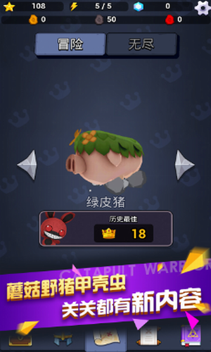 可以收集众多的装备来提高角色的攻击力,弹射勇者破解版是一款非常好玩的休闲射击游戏,游戏画风卡通可爱,游戏制作精致,玩家在游戏中可以通过弹射将角色发射出去,非常考验玩家的角色熟练度,游戏中玩家将控制角色前往各个关卡冒险,有着冒险、无尽等多种模式可以挑战,点击滑动屏幕调整角色弹射的方向,松开屏幕看着角色快速冲出去撞击敌人,可以收集各种装备类提升角色的属性,需要在闯关过程中需要不断提高操作手法及策略来应对,在冒险过后玩家可以获得不同的人物、装备、及皮肤,并通过养成人物,升级装备,来应对更多挑战