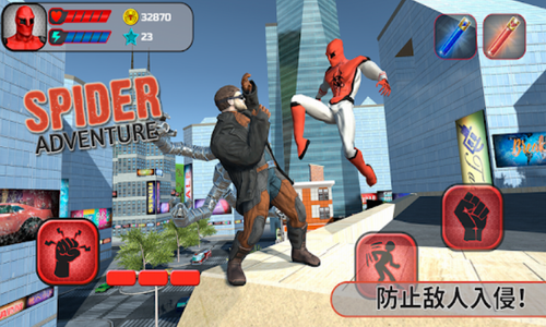 各种炫酷的技能大战展现你超凡的能力,蜘蛛人的冒险无限金币版是一款动作类型的游戏,在这款蜘蛛人的冒险游戏中玩家将面对很多的冒险,你所扮演的就是城市之中的英雄,你需要对我们的城市进行保护,让遇到歹徒的人民能够得到保护,哪里有危险你就会在哪里出现,你可以在游戏中去利用不同的方式来进行操作,比如玩家可以去奔跑或者是去进行射击以及动作战斗等等,这样玩家才可以更好的去游戏中进行战斗,将你的敌人给摧毁