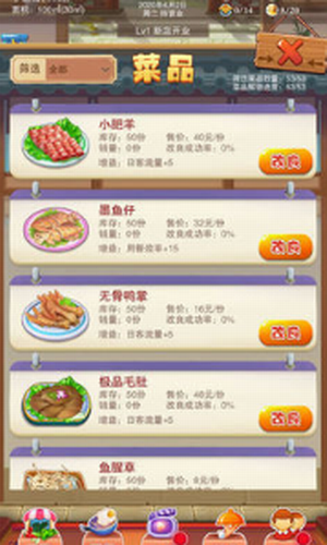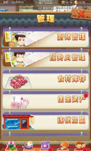 3、集合各种特色锅底、固定资产的管理、食材库存的管理、连锁经营店等特色玩法等,由玩家自由摸索。