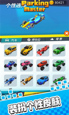 在这里有着许许多多的关卡,这里的每一个关卡的难度都是不一样的,用户需要根据自己的判断找到合适的停车路线。这里还有不少的汽车皮肤、种类,选择一个适合你的汽车也是游戏成功的关键。