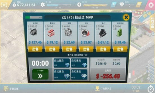 3、游戏中持续的发展是购买各种类型的汽车,通过出售他的零部件进行获利