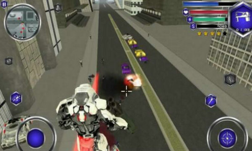 种武力值超强的武器,等你来运用,飞行机器人特警无限钞票版是一款非常有趣的机器人射击游戏,游戏中玩家将会控制机器人在城市中消灭黑手党,机器人拥有非常好的防御装备和攻击武器,玩家还可以进行飞行追击敌人,玩家在这里操控一个机器人特警,你的任务是维护城市的安宁。在飞行机器人特警游戏中有着丰富的地图内容,玩家可以操控自己的机器人在城市里自由游荡,路见不平武力相见。你可以运用手中的武器去消灭那些邪恶势力,保证城市的和平。玩法爽快刺激,玩家可以自由享受飞行射击的乐趣