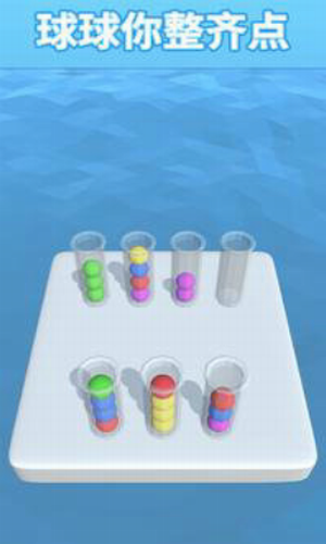 3、相同颜色的球球要放置到一起,玩家需要不断调整来让所有的球球都放到指定的地方