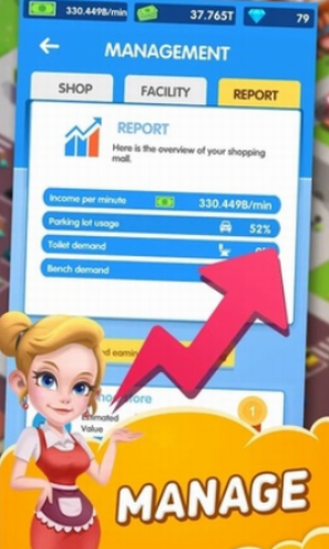 闲置商场较为考验玩家的思维能力和创新能力,闲置商场无限钻石版是一款挑战性十足的模拟经营小游戏,游戏中的玩家开局只有一个小商店,你的目标是将这个小商店打造成一个超大的商场,不用担心操作问题,系统会提供新手教程给玩家,玩家只需要思考如何发展你的小商店即可,要合理合法经营,游戏中玩家可以经营一家大型商场,你需要选择优质地段建造店铺,招募员工为你管理,除了物品不要忘了美食,吸引更多客人吧
