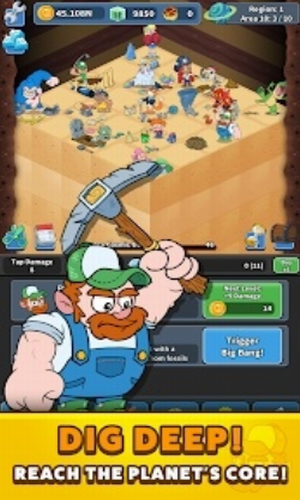 解锁技能的话还可以提升挖掘能力,点点挖掘2空闲挖掘模拟中文版是一款趣味冒险模拟类游戏,玩家在这里扮演的是一名挖掘工人,要在这里挖宝石矿石,游戏采用的是卡通画风,显得游戏很是可爱有趣,主要任务就是不断的挖出丰富的矿产资源,每次挖到就可以得到游戏奖励,为你带来大量的收益,玩家需要使用手中的工具去进行挖掘工作,游戏中有很多的道具都需要玩家进行挖掘才能获得,必须根据自己的需要进行装备购买,否则无法挖到更多的优质矿产,成功挖到宝石之后你也将他们成立为最强黄金矿工队,来这里完成一系列的挑战