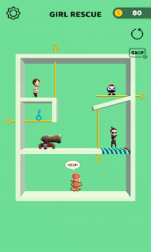 能不能成功逃出去在于你的智慧,赶快开动脑筋来找到通关方法,别针救援破解版是一款需要用自己的勇气与智慧去场上营救一个小人的益智闯关类型的游戏,采用的是拉环解谜的游戏玩法,在这款别针救援游戏中你需要做的就是正确的顺序拔出别针,这样才可以将男孩以及女孩给拯救出来,这样的游戏玩法操作起来的时候是非常简单的,但是很考验玩家的逻辑思维能力,让玩家很容易上瘾,在进行拉环的时候需要避免游戏中的炸弹或者是凶猛的动物以及僵尸和箭头等等,帮助男孩逃出危险的房间,在画面的打造上采用的是卡通的风格,这样的风格让画面更加的精美