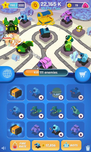 玩家可以操作这些个机器人来进行战斗获得游戏的胜利,合并机器人塔防破解版是一款统合了塔防和点击经营玩法的小游戏,简单容易上手的操作玩法,在这里玩家需要去合并机器人,通过两两相同的机器人合成来获得更强力的机器人,高级的机器人收集金钱的速度也越快,并且升级可以获得更多塔位,放置更多机器人面对更强大的敌人。可爱的3D卡通的游戏画风,带来极致清爽的视觉体验,操作方面不是很难,休闲的感觉更加的浓厚,放置防御塔