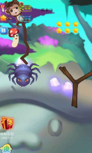 2、在游戏场景内,滑动屏幕,让蘑菇飞起来,落到物体上黏住,成功抵达终点即为成功,若不小心掉落,则游戏失败。