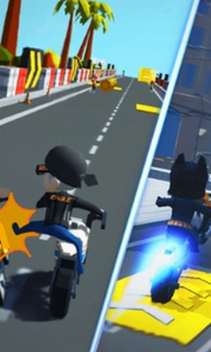 3、摩托车设计百变皮肤,完成挑战任务,轻松驾驶小黄车、救护车上路,炫酷拉风。