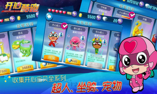 每一个超人都有自己独特的变身造型和特殊技能,开心酷跑无限钻石版是一款超级刺激好玩的跑酷竞技游戏,喜爱跑酷类游戏的玩家们赶快看过来,它为玩家打造了全新的3d视觉特效,让你有一个更刺激的游戏视觉体验,更有超多竞技赛等你来参与,游戏玩法丰富多彩,多种模式任你选择,你需要不断进行跑酷,并对抗邪恶超人。游戏中有着多样的玩法模式,如对战模式、故事模式等等,带给玩家不同的挑战乐趣,快来这里开启欢乐跑酷之旅吧