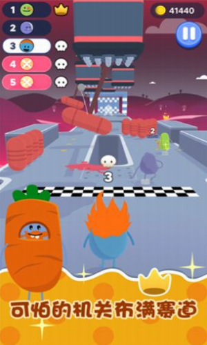 2、和其他玩家上演精彩的闯关秀吧!超多机关陷阱就隐藏在赛道之中,你随时都有可能中招失败