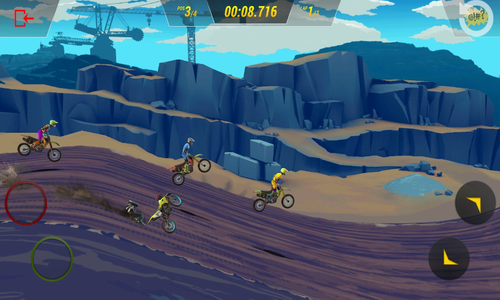 3、带领玩家在职业生涯和时间竞速两个模式之中,去体验极速刺激而且疯狂的越野摩托车竞赛
