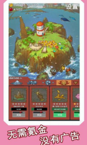 也可以放置让工人们自己建造,慢慢的满足感以及成就感哟。心屿游戏去广告版是一款好玩的放置治愈游戏,心屿游戏中玩家游自己的私人岛屿,你可以通过合成放置将岛屿经营扩大,吸引游客,当我们来到游戏中的时候,便是能够建造岛屿,在岛屿当中建造我们喜欢的建筑,也可以放置让工人们自己建造,慢慢的满足感以及成就感哟。感兴趣的玩家速来游戏中体验吧!