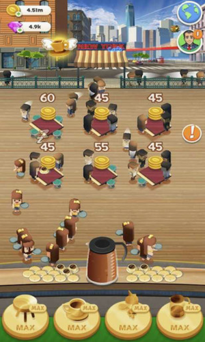 .简单而富有趣味的操作,丰富的厨房知识可以学习,空闲咖啡壶无限钻石版是一款适合大多数人的模拟经营类游戏,玩家在这里将会化身为一名咖啡师,你需要制作各种种类的咖啡来吸引顾客的光临,玩家将在世界各地经营自己的店铺,获得更多好评,同时赚到更多钱。想要在空闲咖啡壶游戏中成为一个真正的咖啡厅大亨并不是那么容易的,你应该注意自己的经营策略。雇佣多少员工、引进多少设备都是你需要考虑的。这款游戏在给玩家带来乐趣的同时,也能让你学到一些经营知识,快来体验吧