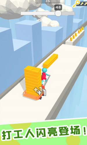 精心设计的赛道上有着许多的危机等待你来挑战,冲鸭打工人破解版是一款好搞怪有趣的休闲娱乐游戏!玩家扮演一个不断往前冲的搬砖小人,通过左右拖动来移动收集路上的砖块。收集的砖块可以用来搭建各种建筑物,通过炮击建好的建筑来获得金币。还能收集金币兑换各种各样的皮肤,首先在游戏中以时下非常流行的打工人为题材来进行打造的,玩家操控着角色在不同的情景中向着前方冲刺着,在奔跑的过程中还会遇到各种障碍物,躲避这些障碍物让你跑的更远,这样你的分数就会更高,这款游戏很考验打工人的反应能力,在丰富的关卡中去进行挑战