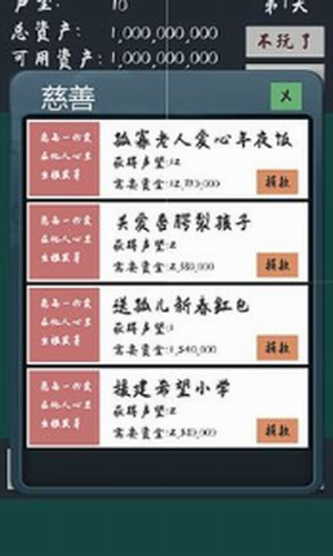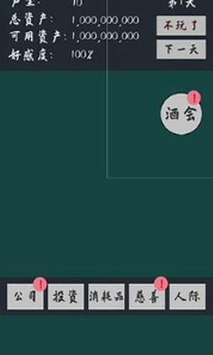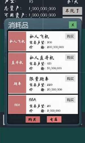 只需要玩家不断的花钱就行,你不会是不会花钱了吧。败它个十亿无限金币版是一款相当优秀的减压向模拟游戏。在这款游戏中玩家们将会尝试去花光自己十个亿的资产。游戏上手的难度并不算高,你可以完全在虚拟世界体验一把富豪的生活!玩家可以来做慈善或者招募员工,就是要花完十个亿,还有就是可以做投资,但是就是不能扔钱或者不法手段来花钱。