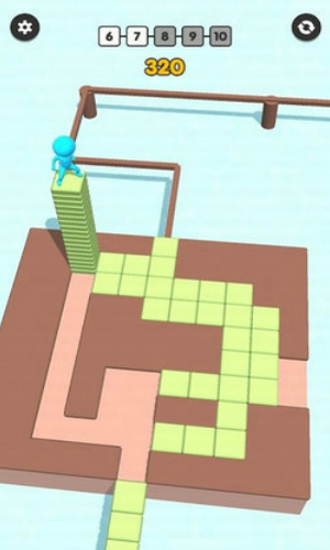1、迷宫图形中滑动角色收集所有的砖块,不断增加高度解锁全新难关