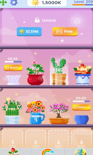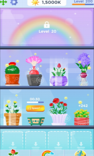 3.升级以解锁更多的花朵,背景,扩大花园,有了所有花朵;