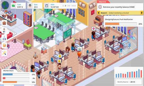 你还需要招募更多的人才,可以扩展公司业务、扩大公司规模。创业恐慌中文版是一款Q版像素风的商业迷你游戏,在游戏中你将经营一家创阿爷公司,你需要寻找投资人的投资或者是合伙人的入股,你需要来装扮你的公司,给公司划分不同的区域,给公司增添各种设备。我们将会从一个人开始,逐渐奋斗,向着建立大公司的目标一步步迈进,游戏非常的自由,行业随你选择,记得招募帮手哦。
