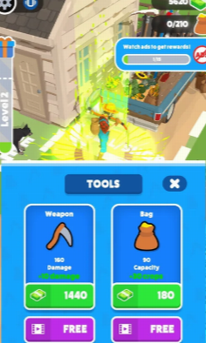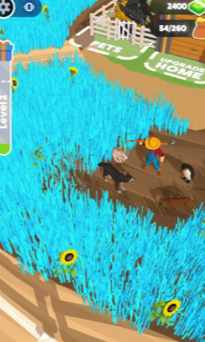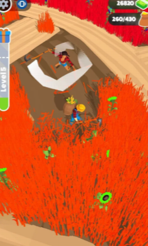 1.游戏很解压,卡通游戏界面,游戏玩法和操作简单,来操作你的工人就可以开始割草了。