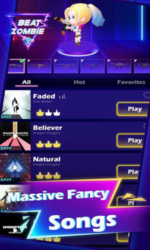 每一种武器都有着截然不同的旋律,趣味十足。节奏僵尸汉化版这是一款以音乐和僵尸射击相结合的一款游戏,在这款游戏中,玩家们将感受到全新的射击模式,并且游戏中各种各样的音乐让玩家们有种身临其境的感觉。不断的尸潮进攻配合动感的音乐律动让你感受极为有趣的打击感,并且还有炫酷的爆炸效果和色彩光影,玩起来极为的痛快!下载节奏僵尸试一试吧!