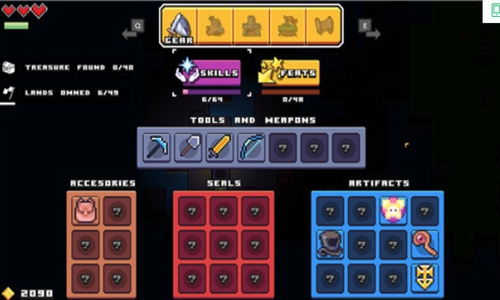 这是一款2D开放世界游戏,融合了探索、建造、经营、即时战斗等元素,其核心玩法虽然不外乎通过搜集和花费资源来解锁更多的游戏内容,但游戏内容巨丰富,包含采集、栽培、挖掘、建造、狩猎、料理、炼金、考古,并且每开拓一块新的土地