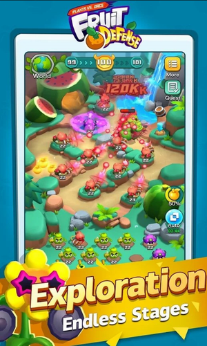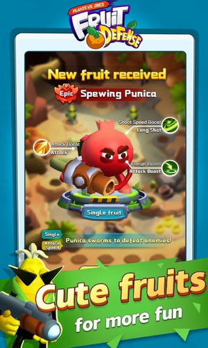 派出您的水果小兵打败兽人入侵者并收集金币,水果防御无限钻石版是一款非常有趣的休闲塔防游戏,Q版卡通游戏风格打造,经典玩法,超多水果炮塔等你解锁,你将升级它们提高战斗力帮助你抵御更多的敌人,采用经典的水果形象作为游戏主角,以独特的策略战术作为游戏的核心玩法。在游戏中,玩家可以通过各种不同的战术放置塔防来抵御敌人的攻击,超多特殊技能可以解锁,攻击范围更远,让你的防御力变得更强。游戏关卡丰富,难度也会不断提升,每一关的怪物都会变得越来越厉害