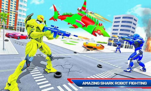 提升鲨鱼的战斗力,各种属性的提升就会更容易击败敌人,进攻式鲨鱼机器人中文版是一款可以让你去感受到精彩激烈的机器人对战游戏,你将在这款进攻式鲨鱼机器人最新汉化版游戏中控制着自己的鲨鱼机器人来进行战斗,有两种形态可以去进行变换,首先是人形态的机器人,其次就是鲨鱼形态的机器人,你可以去自由的进行变换,游戏中的画面采用的是3D风格,在机器人和鲨鱼之间来回变换非常的有意思,和坏的机器人进行战斗,保卫超级城市不受外星入侵