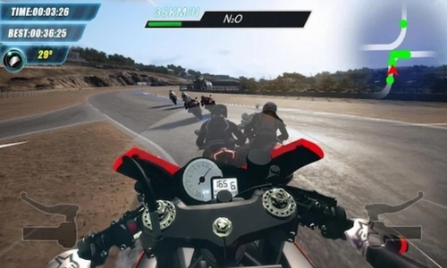 1、点按屏幕可加速摩托赛车,还可获得双倍计分