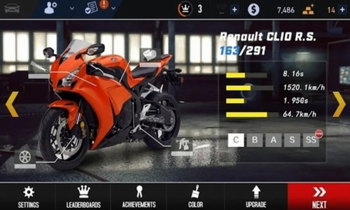 4、选择高级摩托赛车,获得更多得分和金币