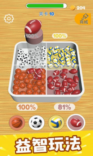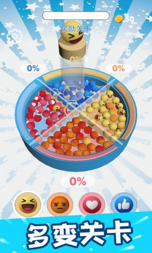 海量的画笔工具等待你的解锁,上百种颜色不一的颜料等待你的使用,整球划一安卓版是一款非常有趣的休闲益智小游戏。这款整球划一游戏的玩法多样,但是,通关有点难度。在整个游戏过程中,玩家们需要认真思考,如何才能在最短的时间类通过关卡。这里的关卡设置都是有意义的,玩家们可以放心大胆尝试,玩家所需要做的仅仅是在球球世界中将这些球类进行分类处理,需要将相同颜色的珠子放置在同一个容器当中,使得混乱的这些珠子回归到有序的状态,游戏的场景以及各种道具的打造都是十分的简约,但都是采用的3D设计风格,每一种颜色都十分的鲜艳,喜欢这款游戏的玩家千万不要错过