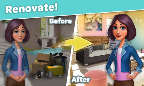 玩家需要通过匹配三个的物体来进行消除,获得金币就可以改造你的小屋了,玛丽的生活中文版是一款清新卡通风格的休闲益智闯关游戏,游戏的操作简单容易上手,玩家将装饰你的家,进行翻修。挑战各种各样有趣的三消关卡,体验欢乐有趣的剧情,只要你在玩消除游戏中赢的积分越多,那么你换取的家具也就越多,玩家需要帮助玛丽来完成她的事业,通过闯关来解锁这些道具和材料,让你的家园焕然一新,还有很多有趣的剧情,这里的风格由你来觉得,乡村田园或者豪宅等等类型都可以