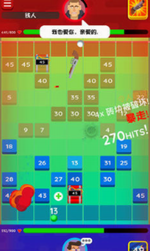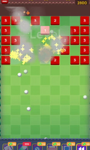 2.玩家需发射数量有限的小球,利用角度和弹射的原理,将砖块消除。