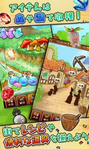 1、在森林与湖畔收集素材,按照配方调配出商品杂货