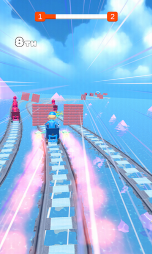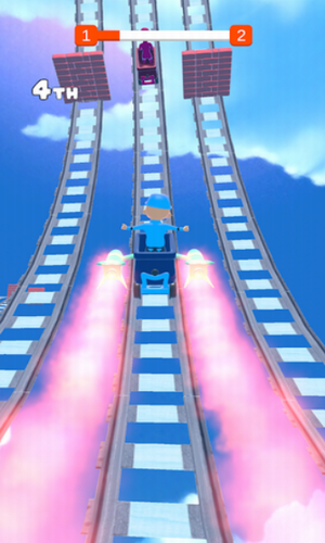 3、赛道上有很多奇怪的障碍物,一些道具帮助司机享受速度