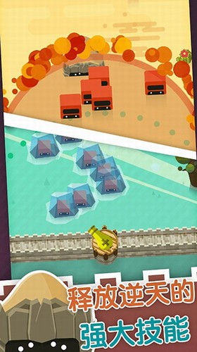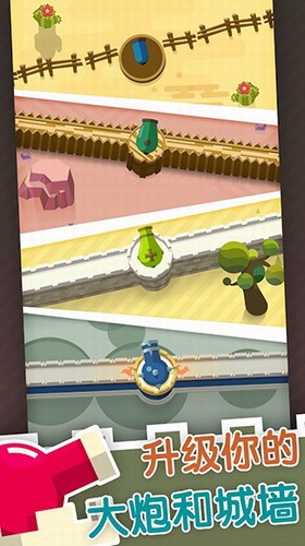3.像素风格的卡通画风,各种有趣的场景,解锁强大的火力炮台。