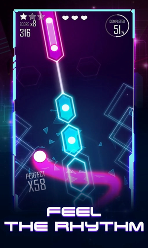 跟随着音乐的节奏不断的前进,及时的躲避各种陷阱,魔点舞线中文版是一款根据音乐乐律来进行休闲闯关的游戏,3D引擎全面升级画面,高清流畅的游戏画质,感受最极致的视觉体验,超多精心设计的关卡等你来挑战,跟随音乐的节奏进行舞动享受音乐的无限魅力,游戏的画面是非常精致唯美,炫酷华丽的你可以得到的视觉感受将会是非常良好的,拥有着许许多多的通过方式,在这里不断地练习是你取得更高游戏分数的关键,上百关卡在这里等待着你来挑战
