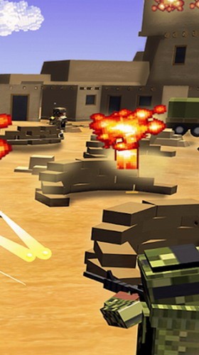 3、玩家经常处在块状军队基地环境,想要获取任务的胜利就需要瞄准射击战场上的所有块状敌人。