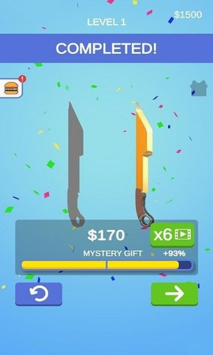 游戏中玩家将面对各种不同的刀具来进行打磨,我磨剑贼6破解版是一款非常有意思的以磨刀玩法为核心的休闲游戏,简单清新的画面,玩家在游戏中需要不断的解锁不同特色的刀具武器进行冒险,游戏中玩家将面对各种不同的刀具来进行打磨,打磨的过程比较的有趣,而且打磨完成以后会有锋利度的测试,如果达到系统指定的锋利度就可以完成关卡挑战,获得相应的奖励,游戏中玩家需要打磨斧头、菜刀、长剑等各种类型道具,每一把都要好好的打磨的呀,磨完后达到关卡要求锋利程度要求即可通关。游戏玩法超有趣的,操作简单易上手,轻松点击屏幕进行即可,还有多种类型的道具可以选择,丰富多彩的关卡可以挑战