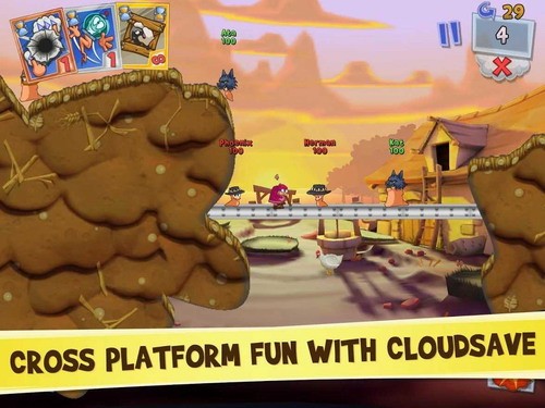 1、游戏人物依旧是那么可爱,持续卖萌中。海滩、鬼城、农家后院和下水道四大主题精致的3D背景下,被硬生生的贴上了各式2D的地形,而且成形过程有点不自然。不过可以DIY的虫虫,就连语音“台词”、胜利舞姿都可以个性选择,这个设定不错。