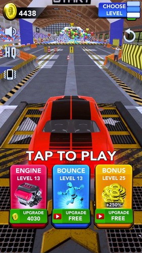 2、有三个按钮,一个是汽车的马达,另一个是人偶向上的弹力即是被弹出的远度,最后一个是获得金币倍数奖励。