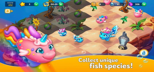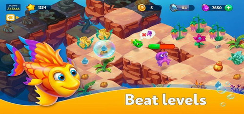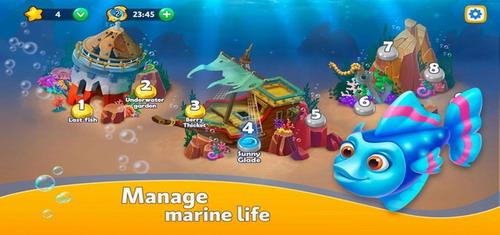 3、、玩家需要完成关卡,您必须清除海底并合并主要元素-海图腾,事前思考,改变海底外观,进化鱼类。