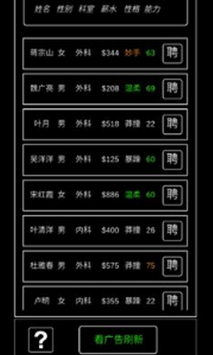 获得更多的金钱来升级医院的等级,并在全国医院总排名中荣获第一。模拟经营暴走医院破解版采用独特的文字形式加上真实的模拟经营类玩法带来从未有过的指尖体验,简单的操作方式不仅可以招募医生还需要购买各种器材设备并且处理各种随机事件提高医院等级,玩法多多上手容易多种选择,玩家可以通过文字的方式了解游戏的故事,通过招聘更多的医术高的医生,不断的升级医院的科室和设备,吸引更多的患者前来看病,扩张医院的业务流程,争取做到更加认真细致,帮助医院创造更多的收益,喜欢的玩家赶紧试试吧!
