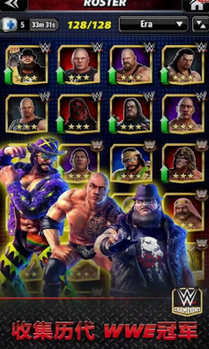 收集WWE巨星如巨石强森,送葬者,兰迪;沙瓦吉,约翰;希南,Triple H,Big Show,巨人安德烈,以及更多。