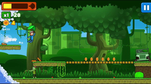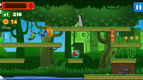 2、这是经典的冒险游戏,点击屏幕可控制小男孩保持奔跑和冲刺。