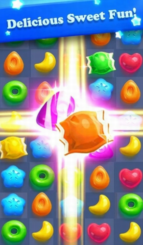 1、移动甜美的糖果,让三个一样的糖果在一条直线上,就可以收集和粉碎它们。