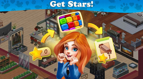 3、克服丰富多彩的关卡以获得明星,并使用它们购买新家具,重新装修顶楼等等。