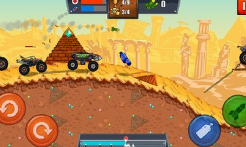 非常好玩的一款2D赛车竞速游戏,精致的2D横版卡通游戏的画风,具有浓厚的街机游戏的风采,整体的玩法非常的简单和激情,在赛车竞速的过程中可以捡取地图上的武器和其它的道具攻击你前方的敌人,注意自己的血条即可,一款怪物卡车游戏,还有丰富的关卡等待着你的挑战哦。